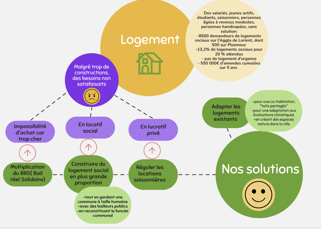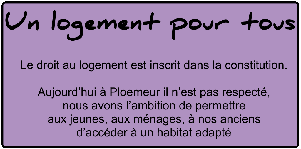 - Collaborons avec les services de Lorient Agglomération en charge de l’habitat dont nous souhaitons qu’ils soient plus actifs sur le territoire de la commune.